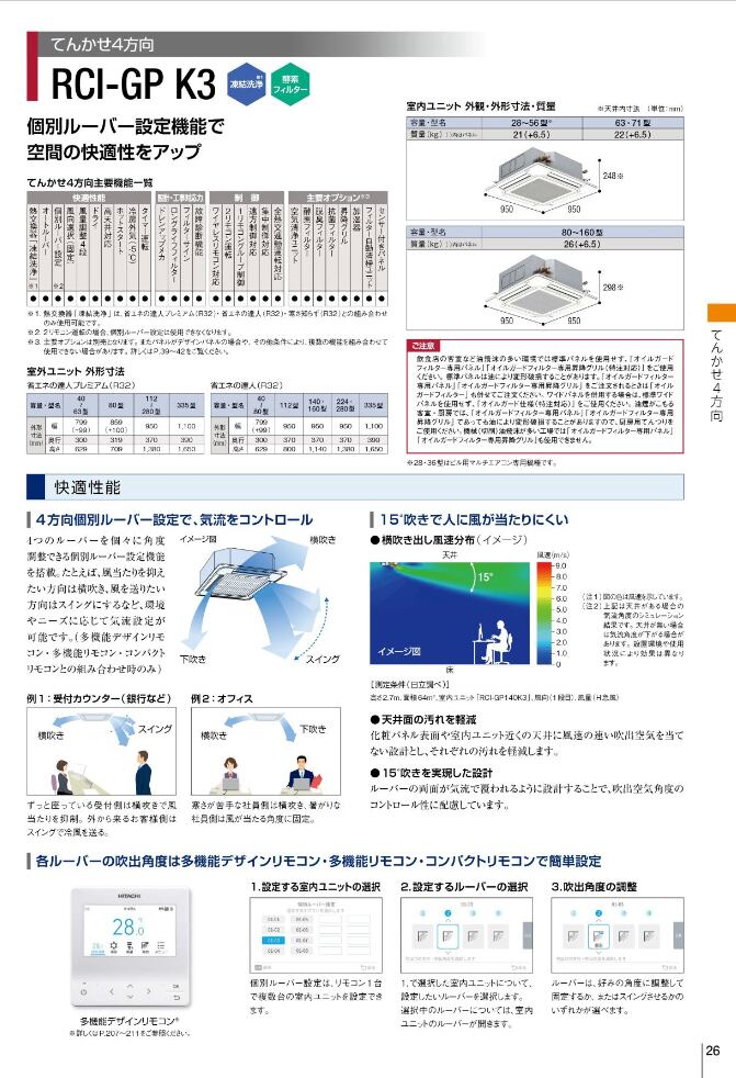 HITACHI・天井カセット形・4方向吹出し・業務用エアコン・80形・3馬力・省エネの達人プレミアム